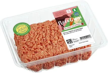 Axfood var först i branschen med att i stor skala lansera en färs av lika delar nötkött och grönsaker. Färsen Nöt & Grönt har bara hälften så stort klimatavtryck som vanlig nötfärs, är Nyckelhålsmärkt, och bär Kött från Sverige-märkningen.